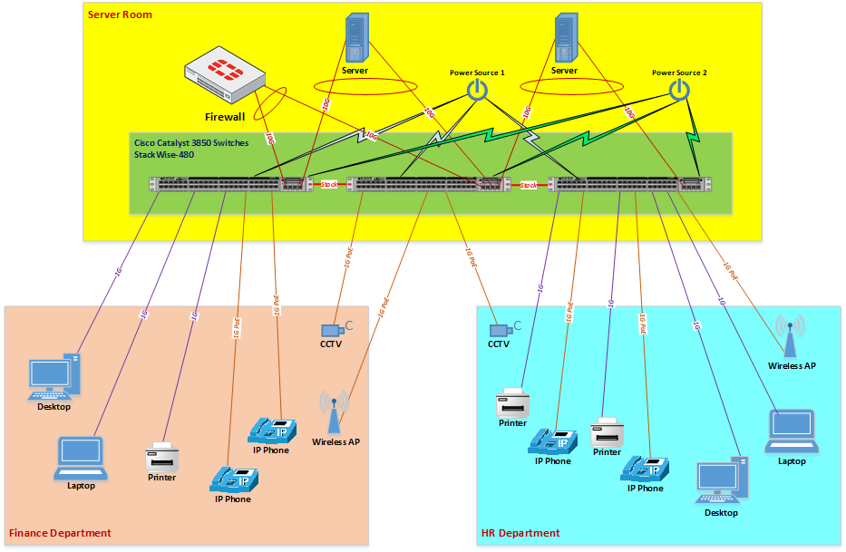 Simplified Design with PoE: The PoE capability of the Catalyst 3850 contributes to a simplified network design by reducing the need for multiple power points. This not only streamlines cable management but also enhances the overall aesthetics of the setup.